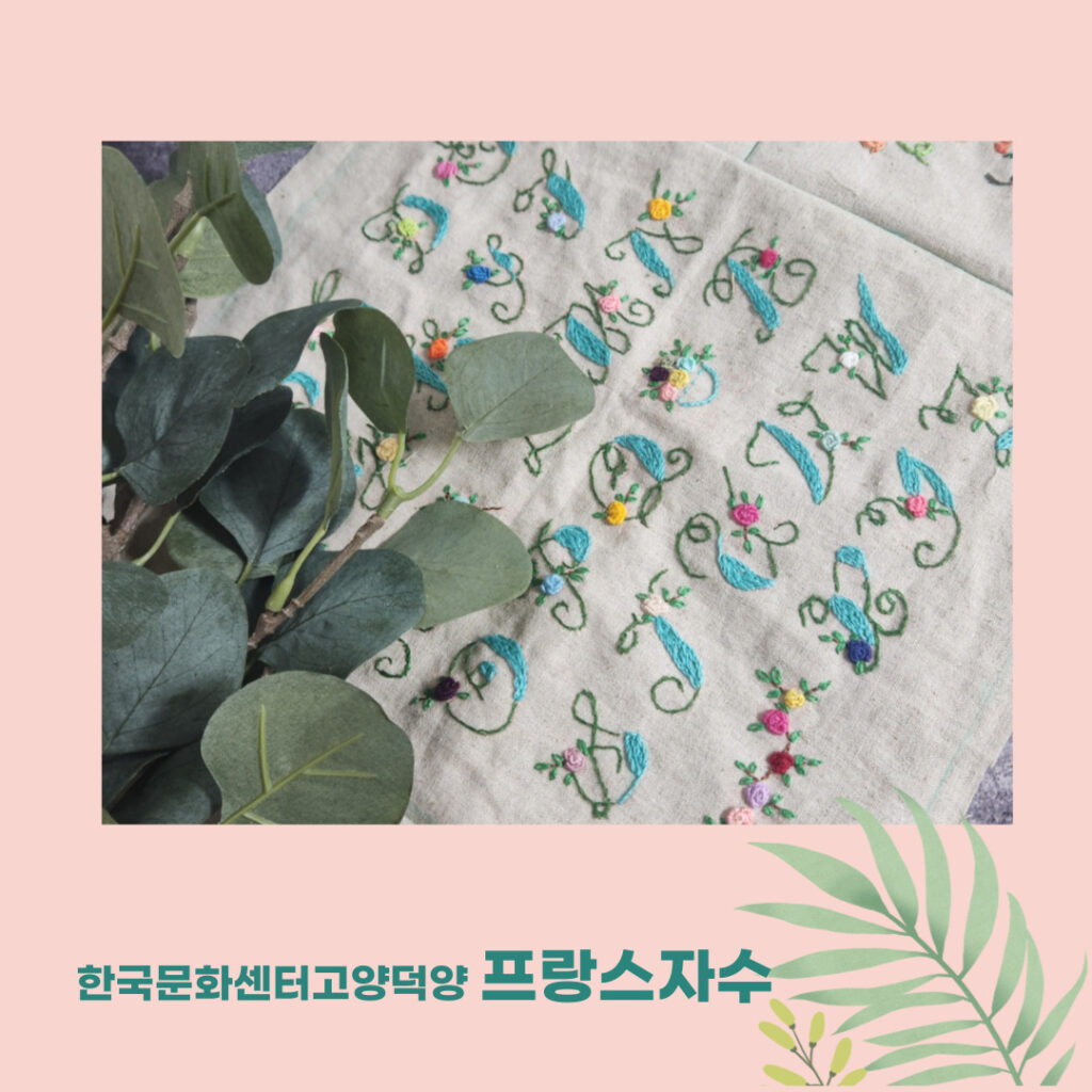 프랑스자수는 바늘과 실, 수틀 등 기본 도구만으로 시작할 수 있어 공예 입문자가 비교적 부담 없이 접근할 수 있는 분야로 꼽힌다. 한국문화센터는 기초 스티치 중심의 커리큘럼을 바탕으로 꽃과 식물, 문자 표현 등 다양한 응용 작업을 단계적으로 익힐 수 있도록 수업을 구성하고 있으며, 여기에 헌 옷이나 사용하지 않는 천을 활용한 패브릭소품 제작 과정을 더해 실생활 활용도를 높이고 있다.